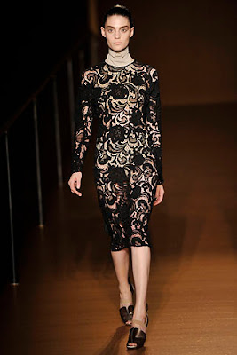 Según Suzy Menkes está presente en la ambientación del desfile con jardín barroco y fuente incluida, en la orquesta de 80 músicos, en las gasas, los tules, las plumas.